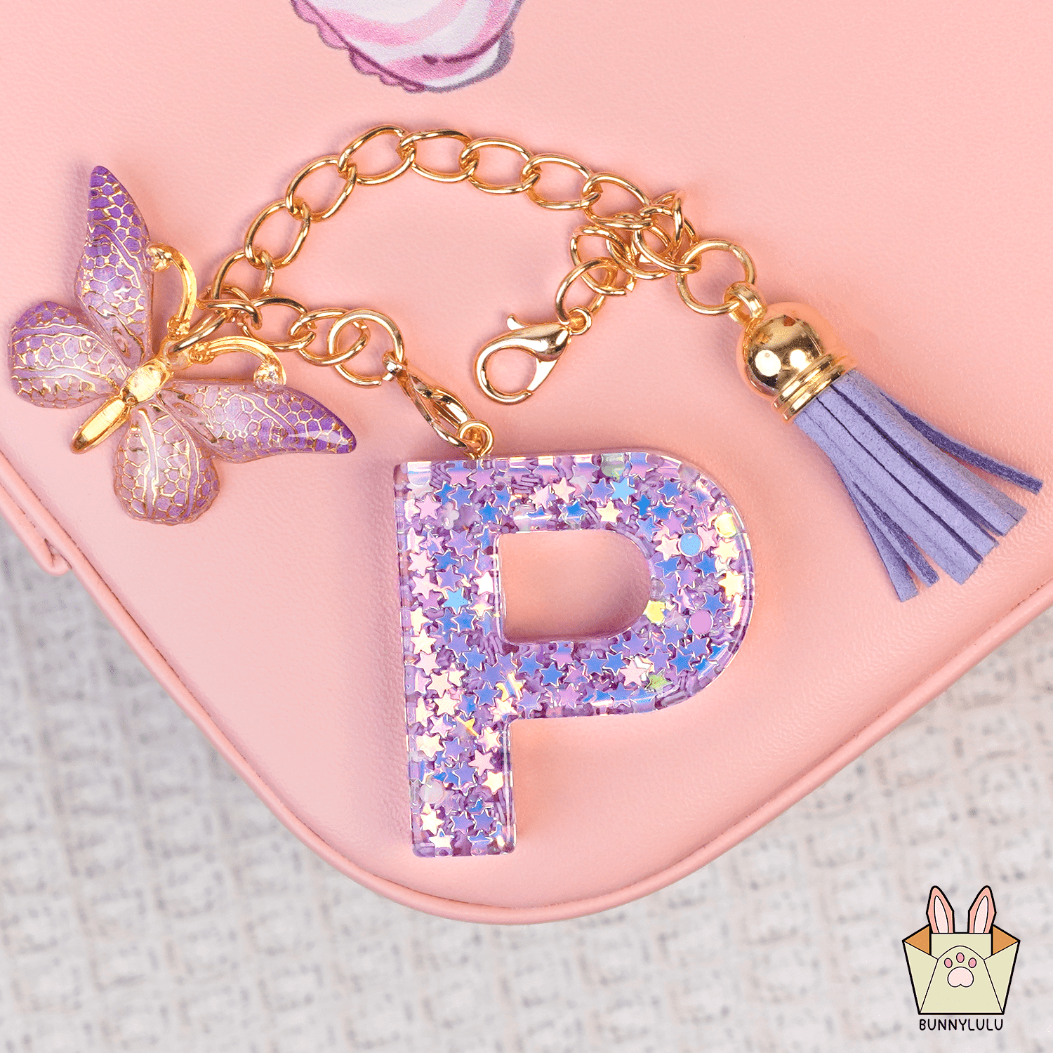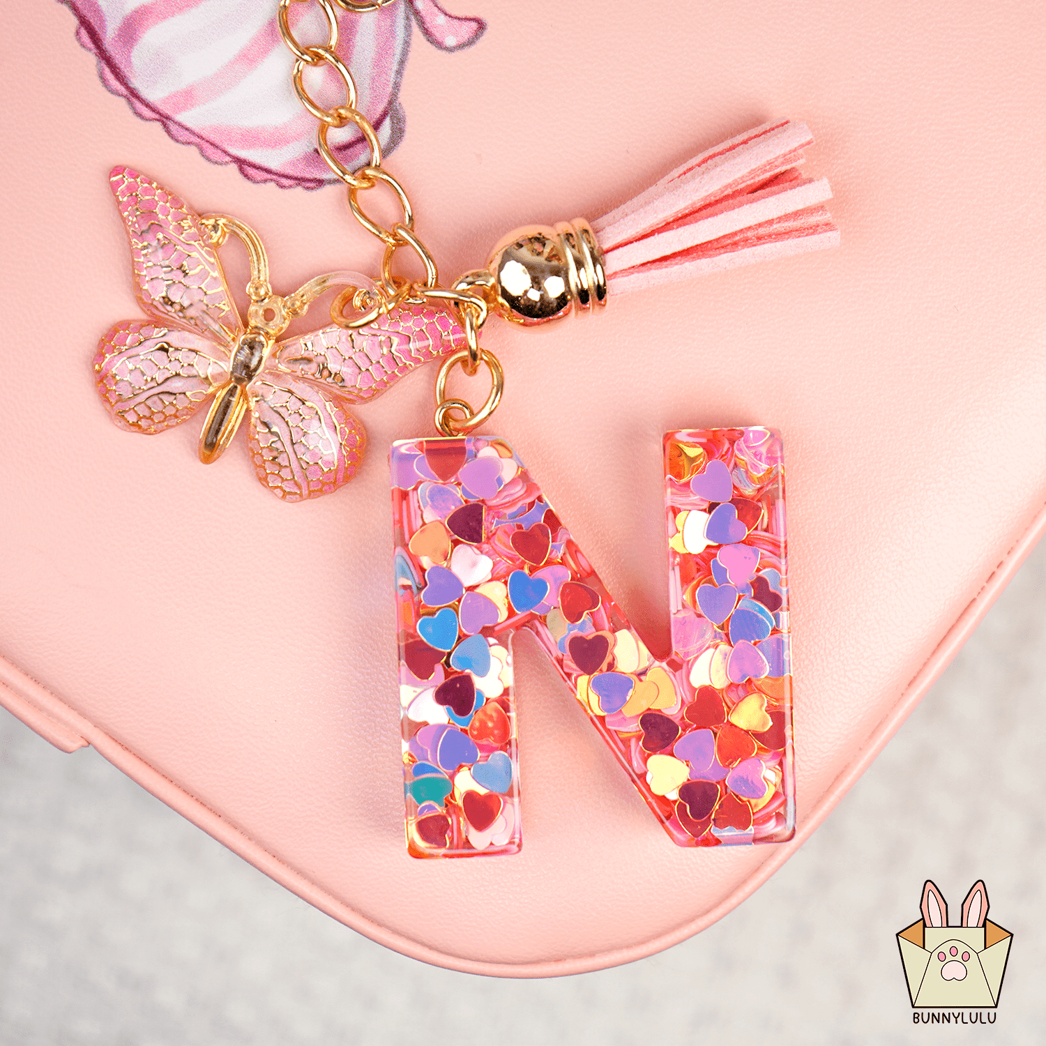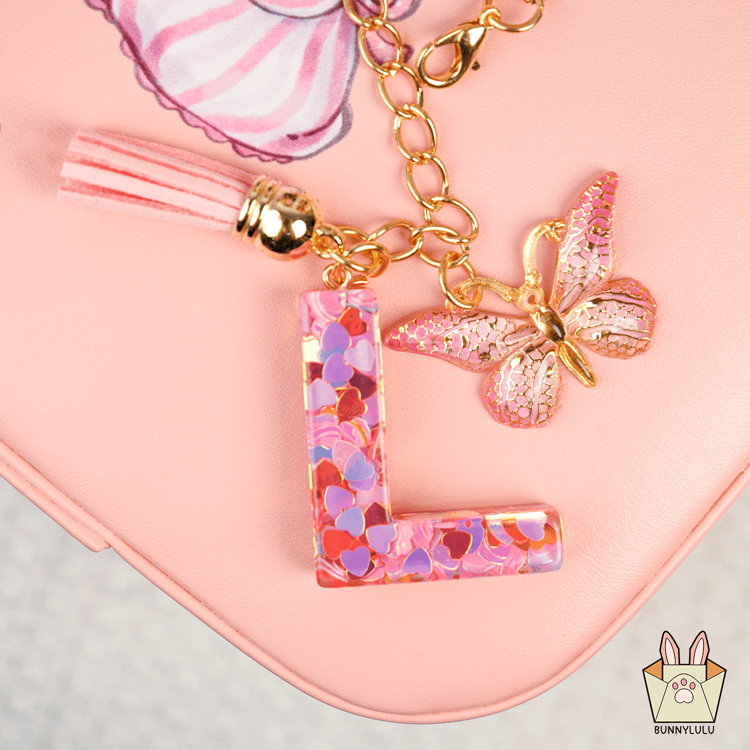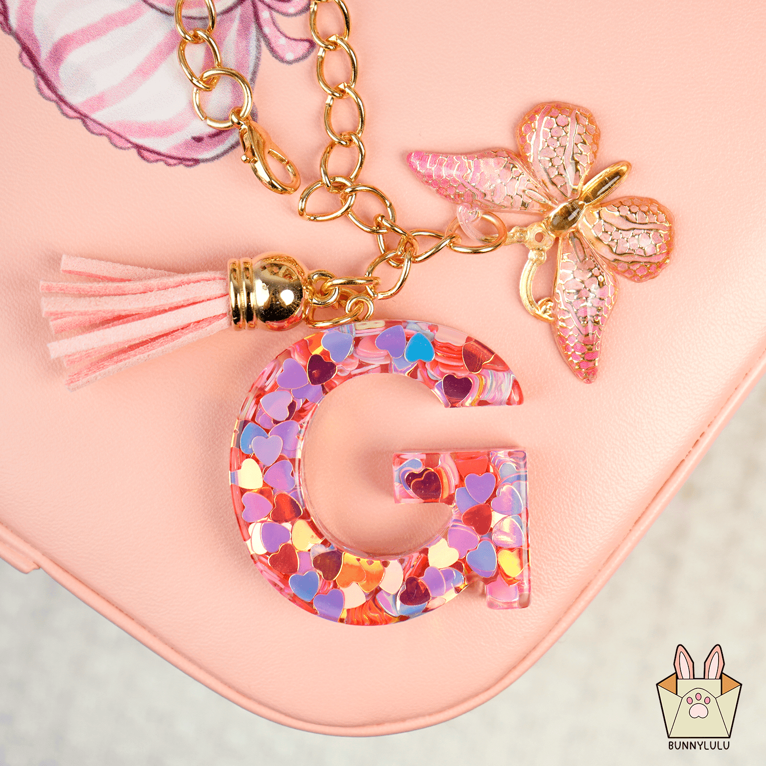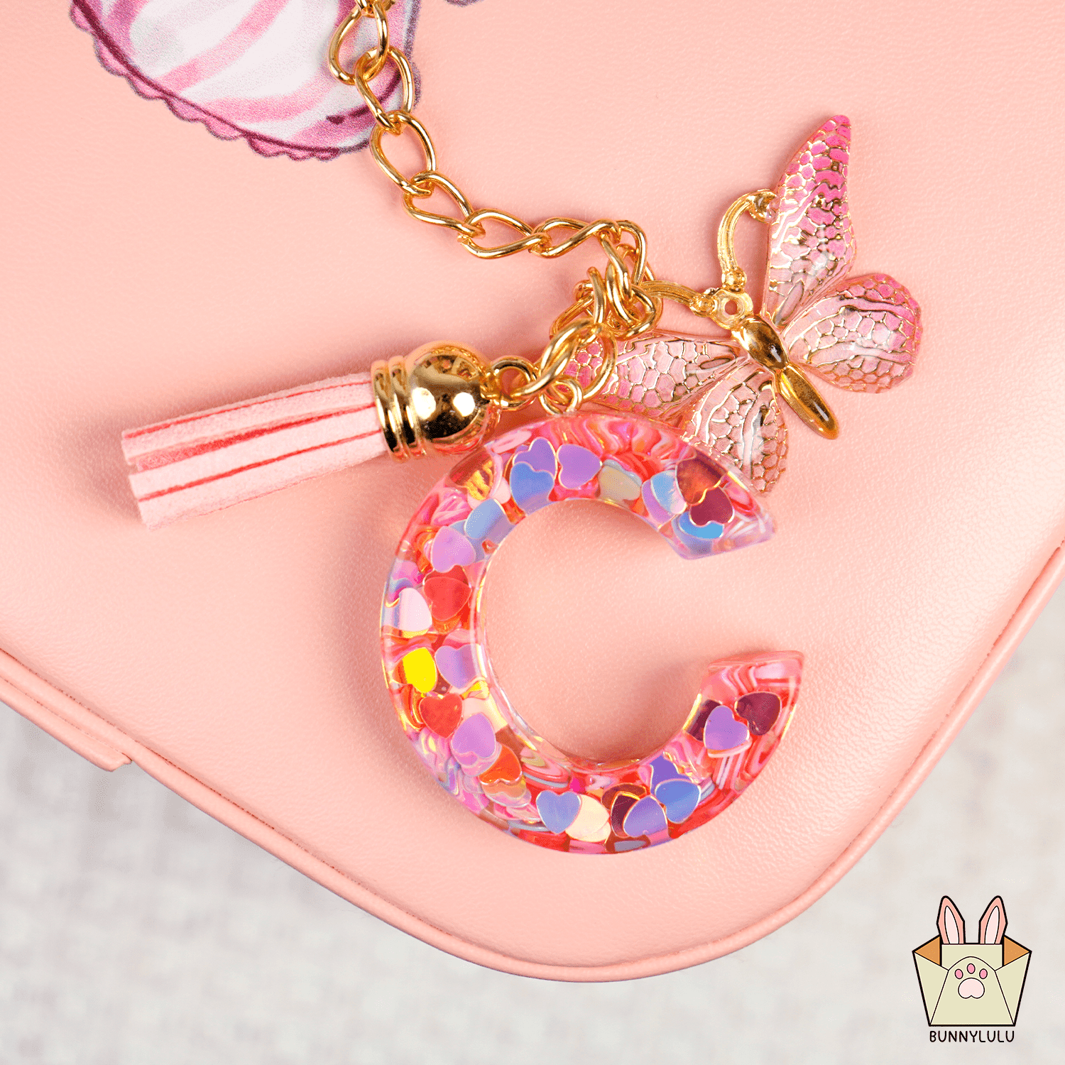 BunnyLulu Initial Letter Resin Keychains with Tassle